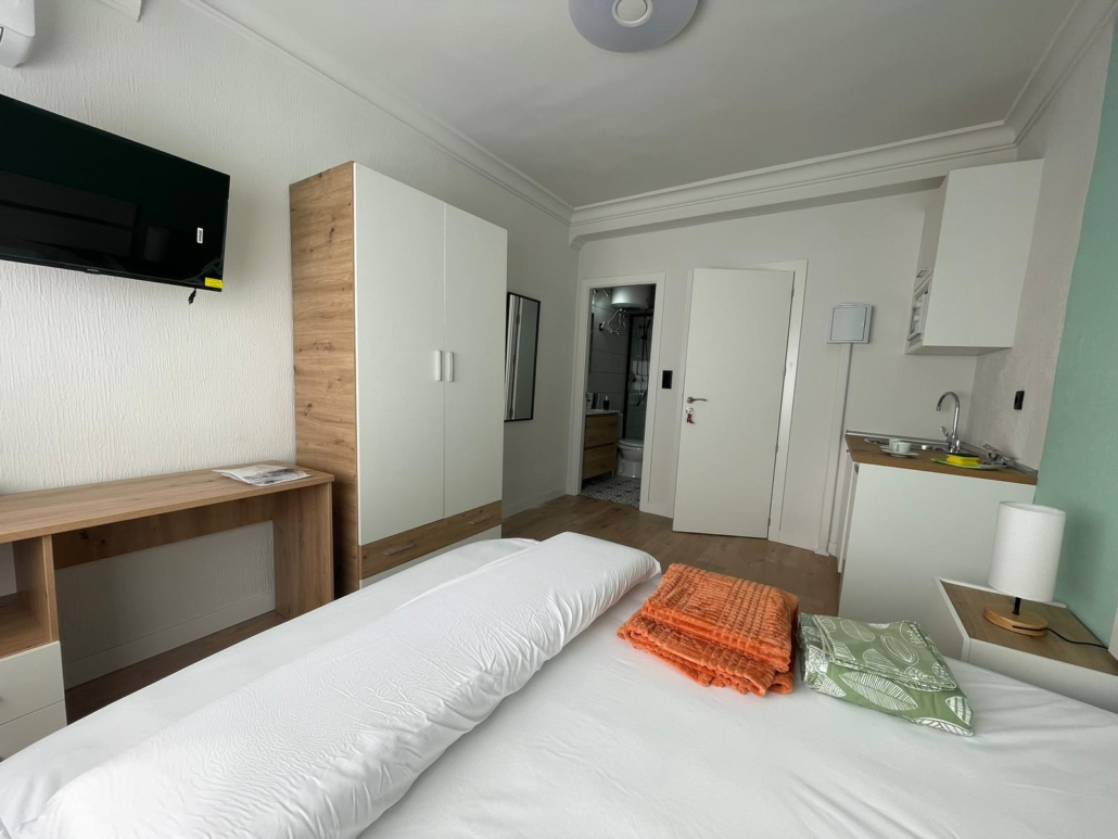 Cada suite está equipada con acabados de alta calidad, suelos de gres imitación madera y mobiliario moderno que crea un ambiente acogedor y funcional.